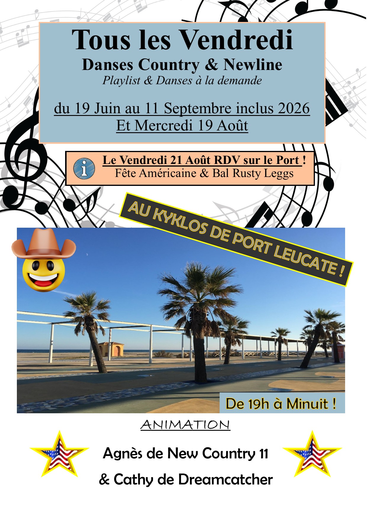 | Vendredi 21 Août | Port-Leucate "au Port" (11)  | Fête Américaine - concert Rusty Leggs |
